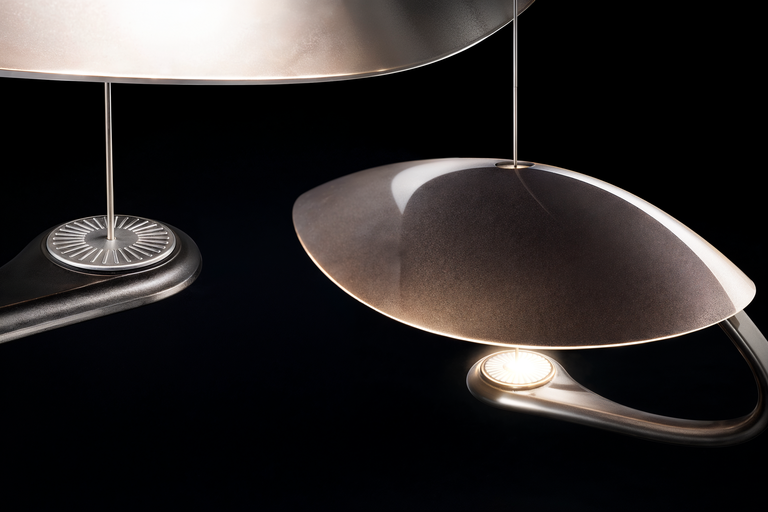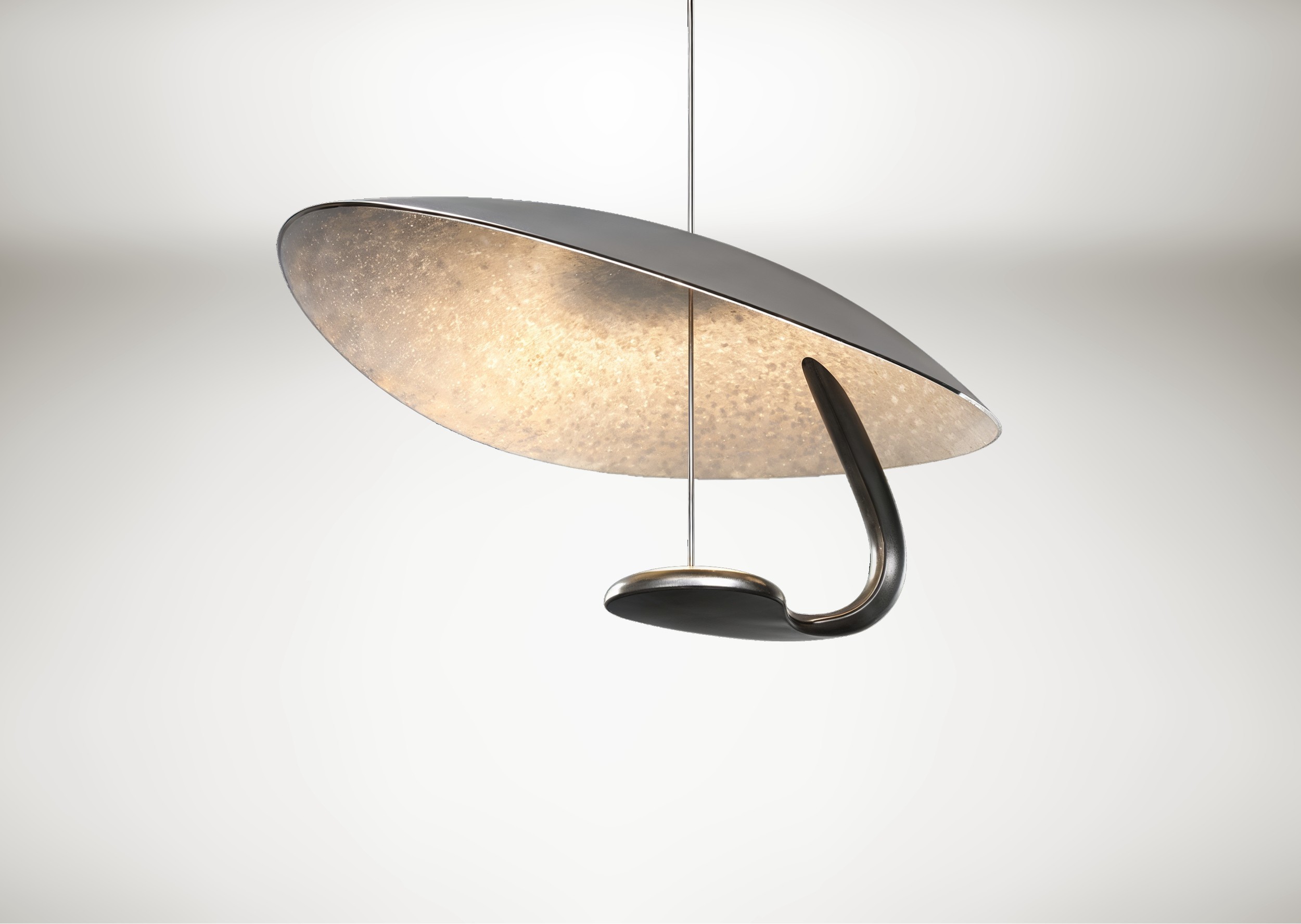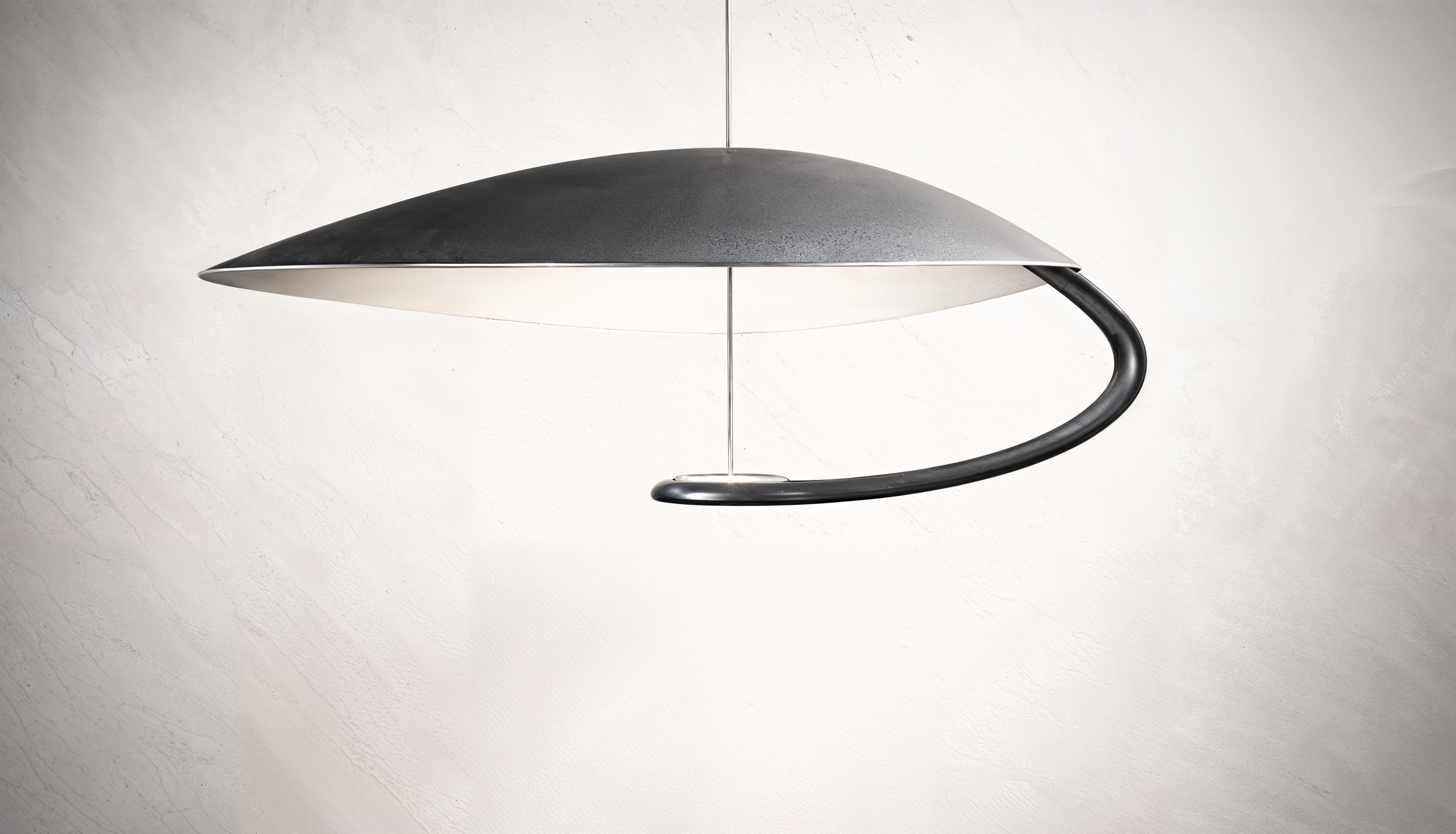 Despite its asymmetric form, the lamp is precisely engineered to remain perfectly horizontal, creating a calm and controlled presence in space.